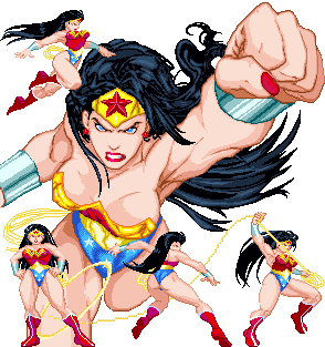 I'm a huge fan of the Greek mythology and I really enjoyed when George Perez recreated Wonder Woman legend using a lot of those myths after the "Crisis on Infinite Earths" events. Many years after and many good (and some real bad) stories later, my admiration for the princess Diana of Themyscira continues to grow. I have started working on her mugen version way back on 2004, in that time I had the help of "Erradicator" as the main coder of the character. We release in the end of that year a version of W.W. (discontinued now).The previous version was mostly based on Erradicator's W.W.(genesis/megadrive mugen conversion) with some new stuff.